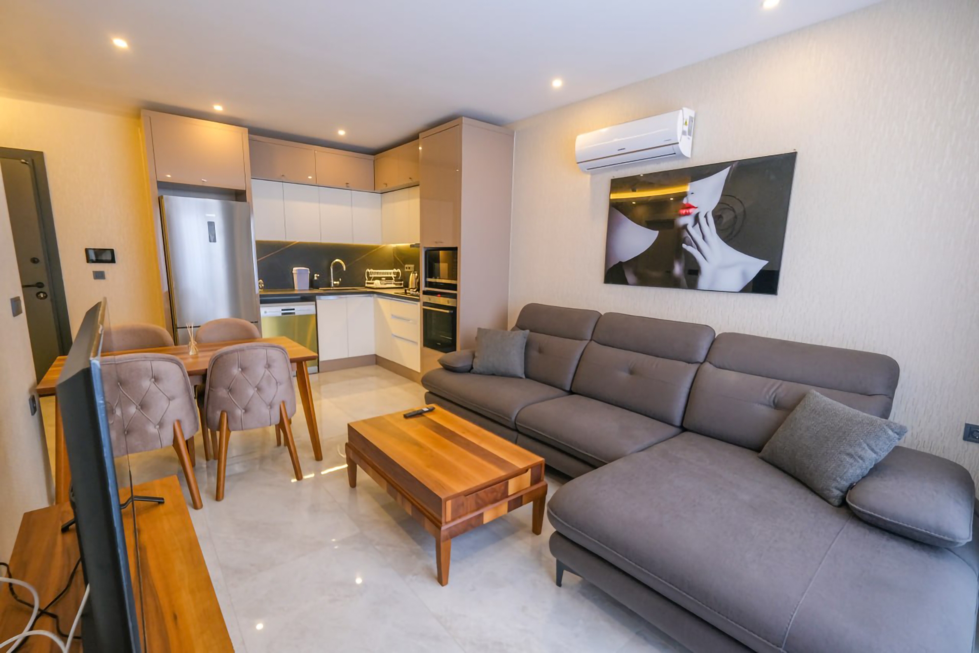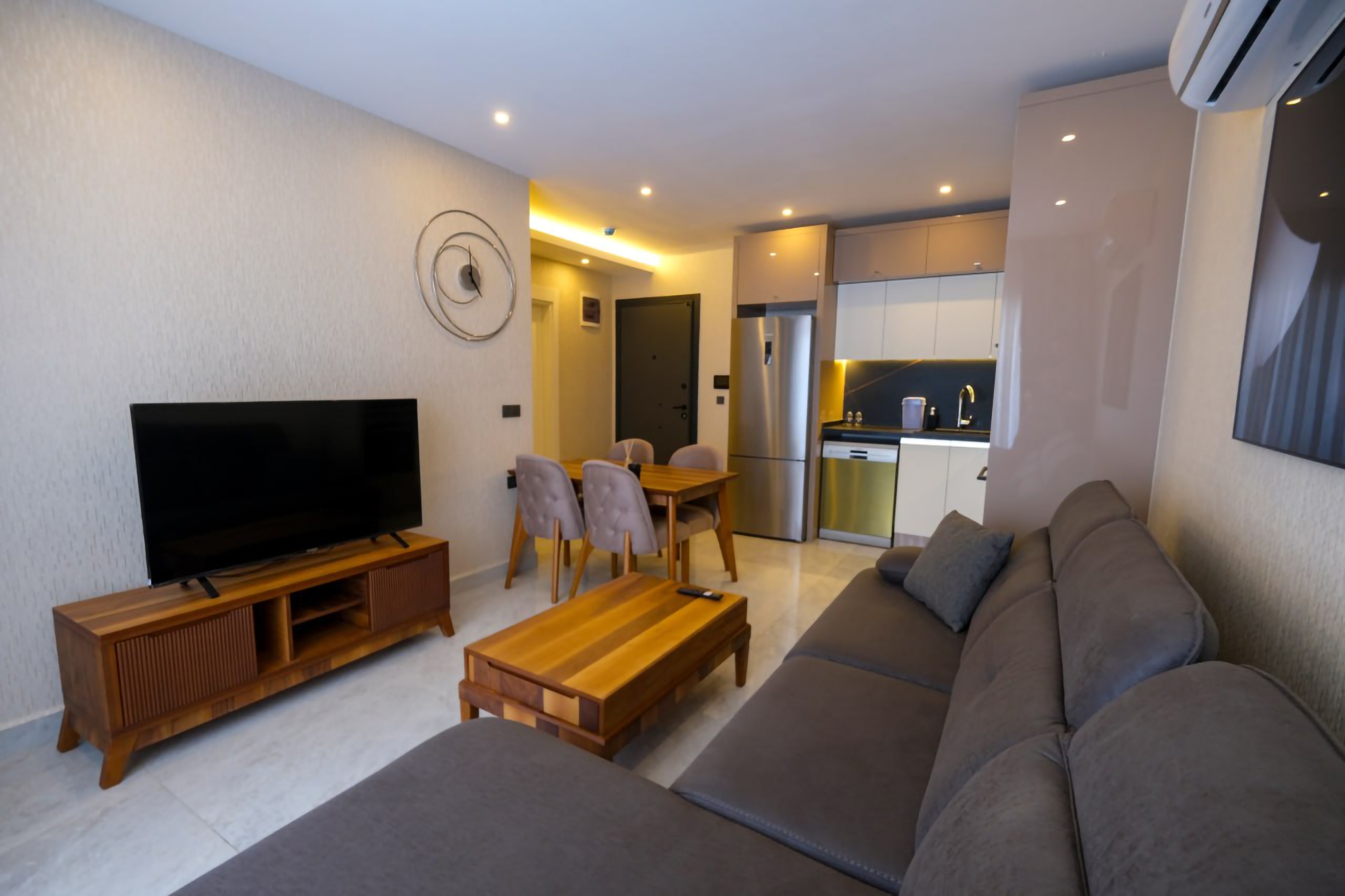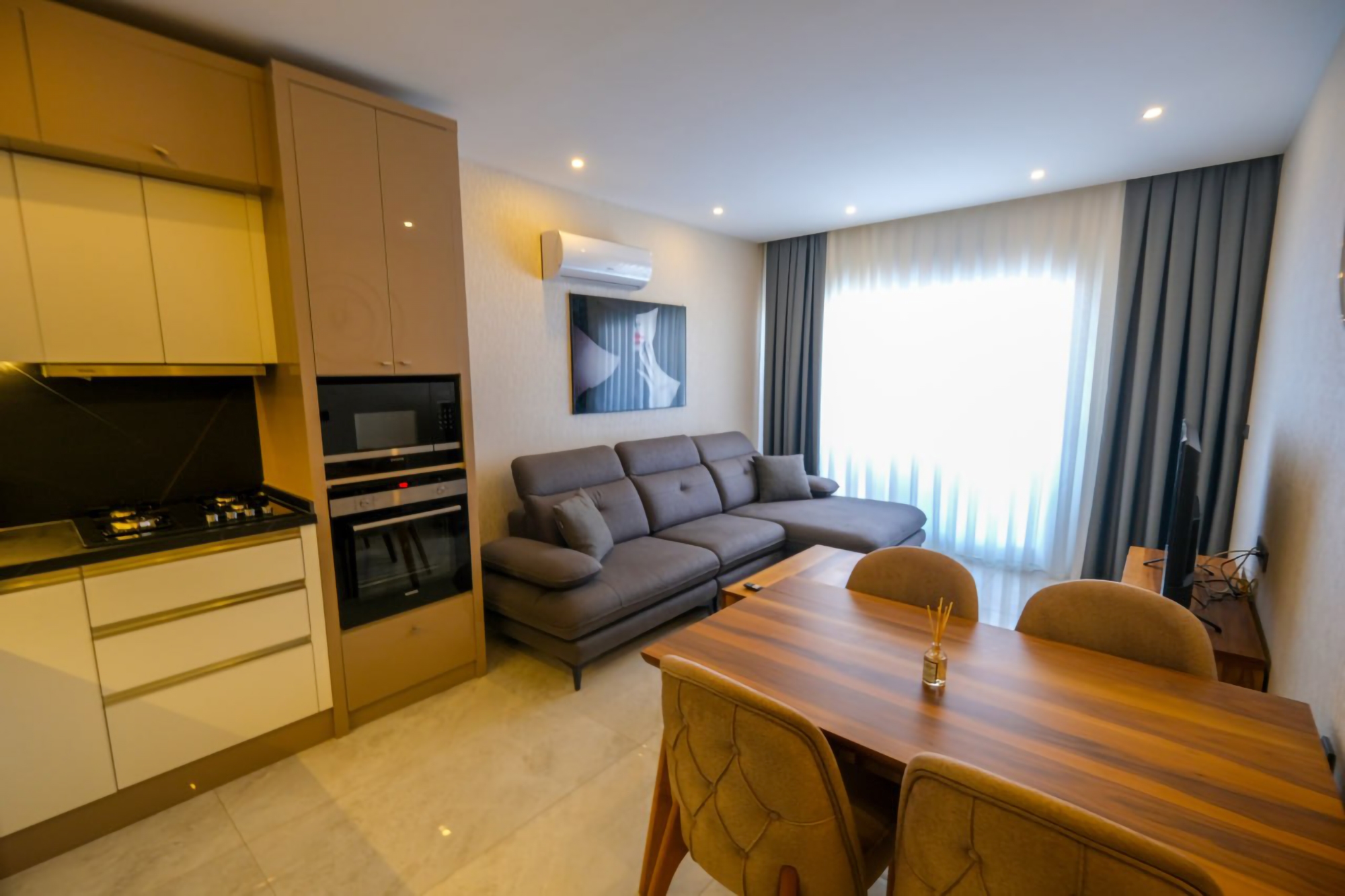 Våkn opp til fantastisk hav- og fjellutsikt i denne luksuriøse 1+1 leiligheten i Alanyas Mahmutlar nabolag. Kun 750m fra stranden, tilbyr denne eiendommen en perfekt blanding av eleganse og bekvemmelighet. Nyt en dukkert i bassenget, slapp av i badstuen eller hold deg i form på treningssenteret på stedet. Den 60m2 store leiligheten er fullt møblert, inkludert hvitevarer, og er klar for umiddelbar ...