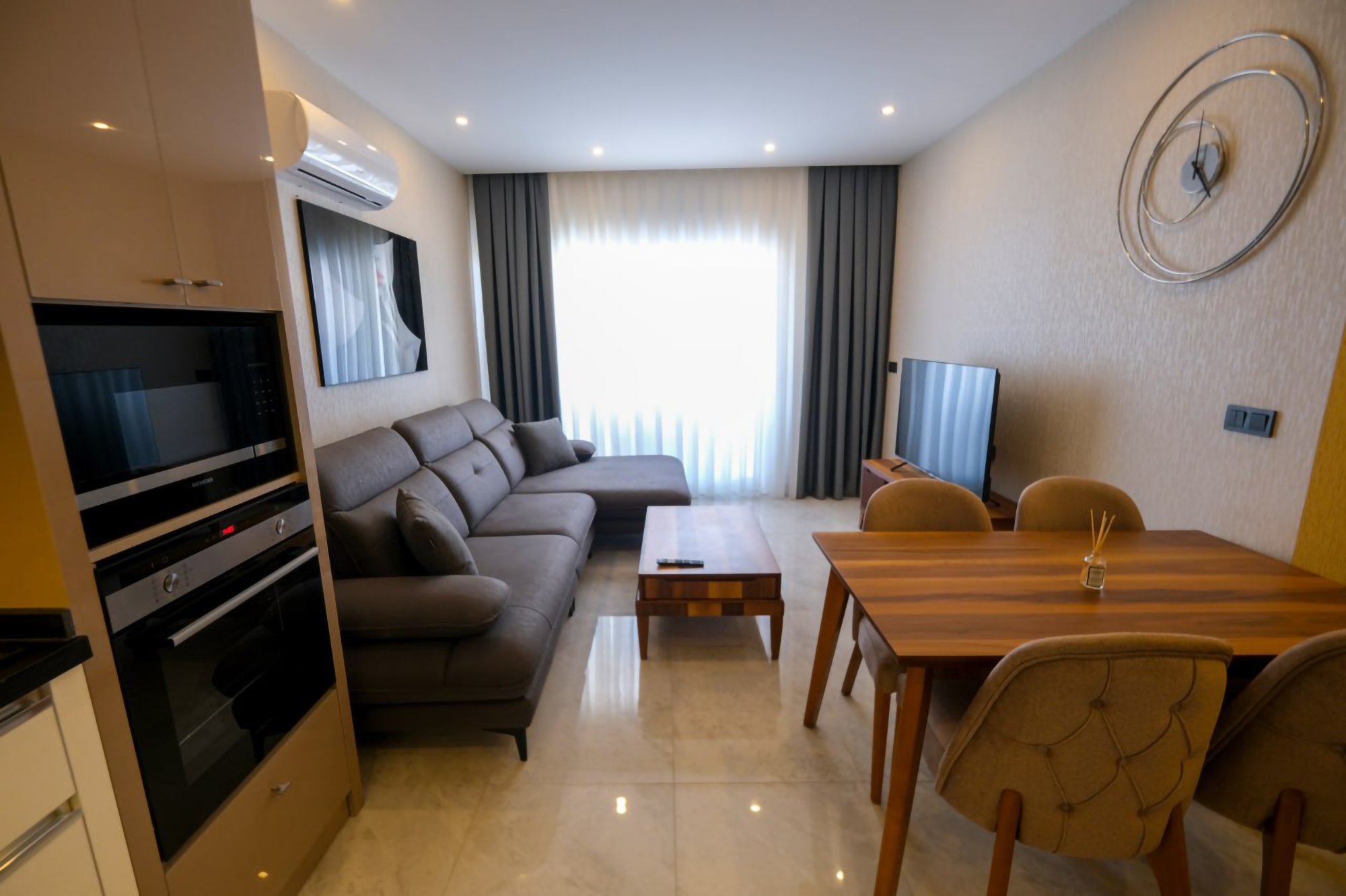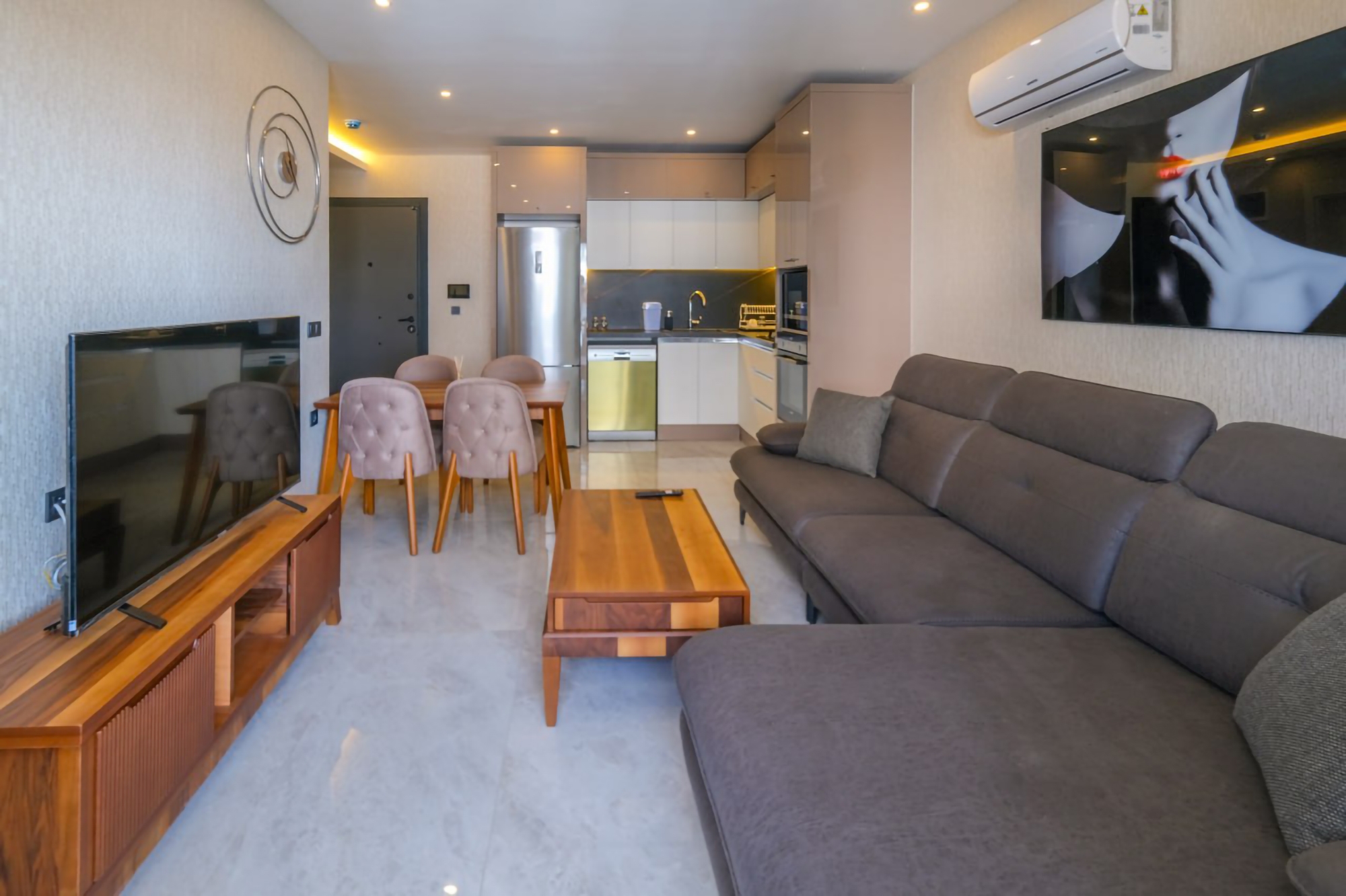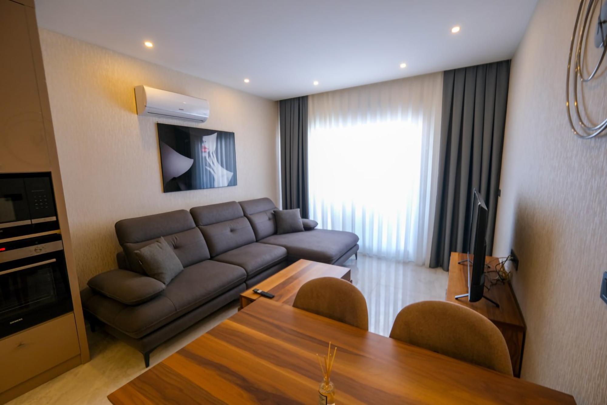 Våkn opp til fantastisk hav- og fjellutsikt i denne luksuriøse 1+1 leiligheten i Alanyas Mahmutlar nabolag. Kun 750m fra stranden, tilbyr denne eiendommen en perfekt blanding av eleganse og bekvemmelighet. Nyt en dukkert i bassenget, slapp av i badstuen eller hold deg i form på treningssenteret på stedet. Den 60m2 store leiligheten er fullt møblert, inkludert hvitevarer, og er klar for umiddelbar ...